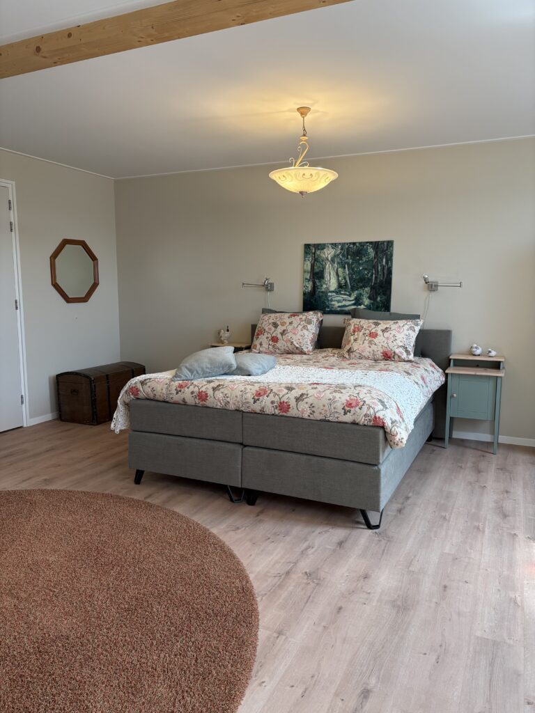 Gelegen te midden van de uitgestrekte velden en karakteristieke boerderijen van Groningen, biedt deze charmante kamer een warm en gastvrij toevluchtsoord voor reizigers. Gasten kunnen zich in Bed & Breakfast ‘De Klaproos’ verheugen op een gezellige zithoek en eethoek, ideaal voor ontspanning en samenzijn. Met ruimte voor drie personen, inclusief een comfortabel tweepersoons kingsize boxspringbed (1.80 x 2.10 cm) en een eenpersoons boxspringbed (90 x 2.10 cm), is er genoeg ruimte voor het hele gezelschap. De mogelijkheid om zelf koffie en thee te zetten voegt extra huiselijkheid toe aan het verblijf. Bovendien heb je toegang tot een luxe badkamer, compleet met een bad, een verfrissende regendouche en een apart toilet. Geniet van een rustig ontbijt op je kamer, in ons gezellige theehuis, of op een van onze mooie terrassen.