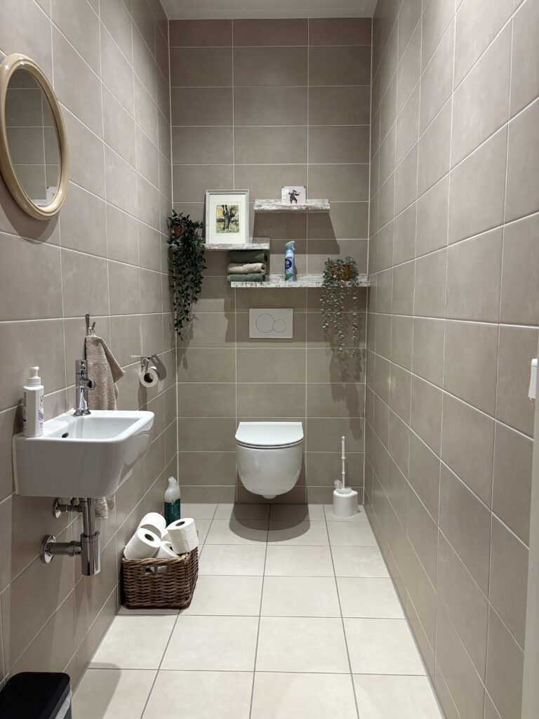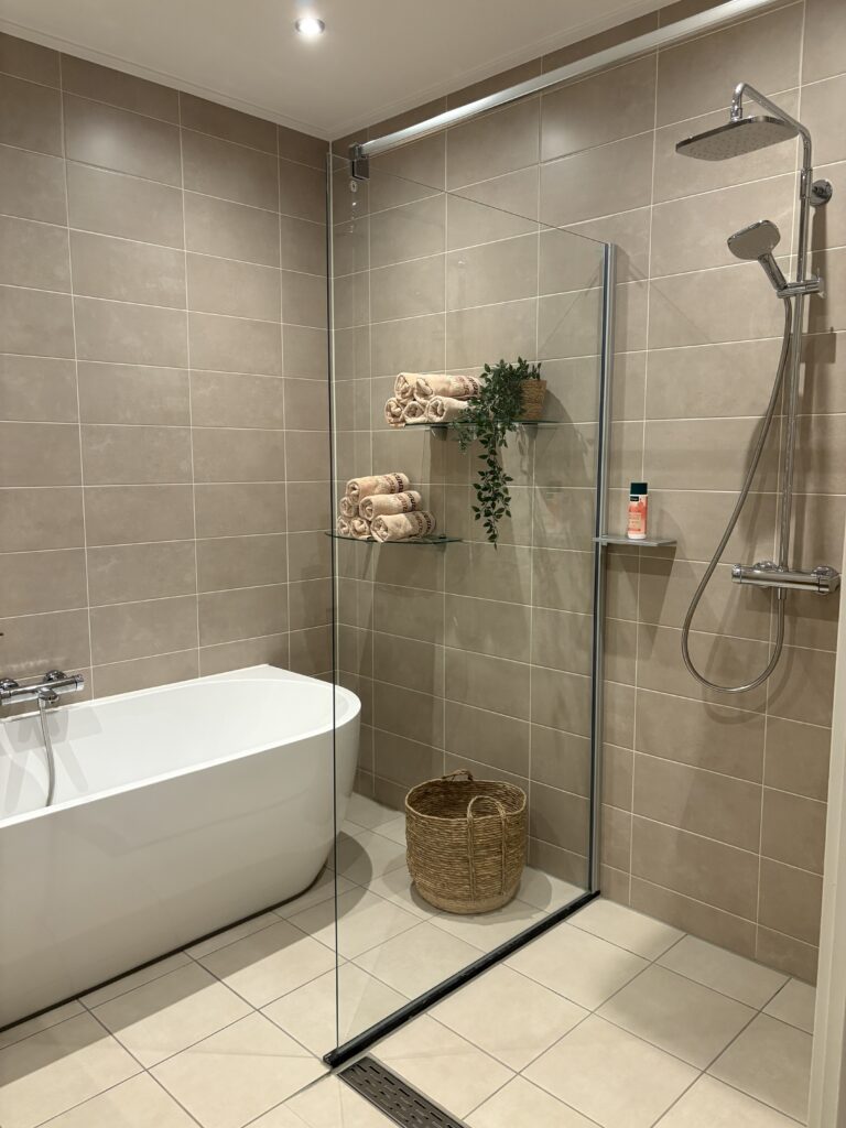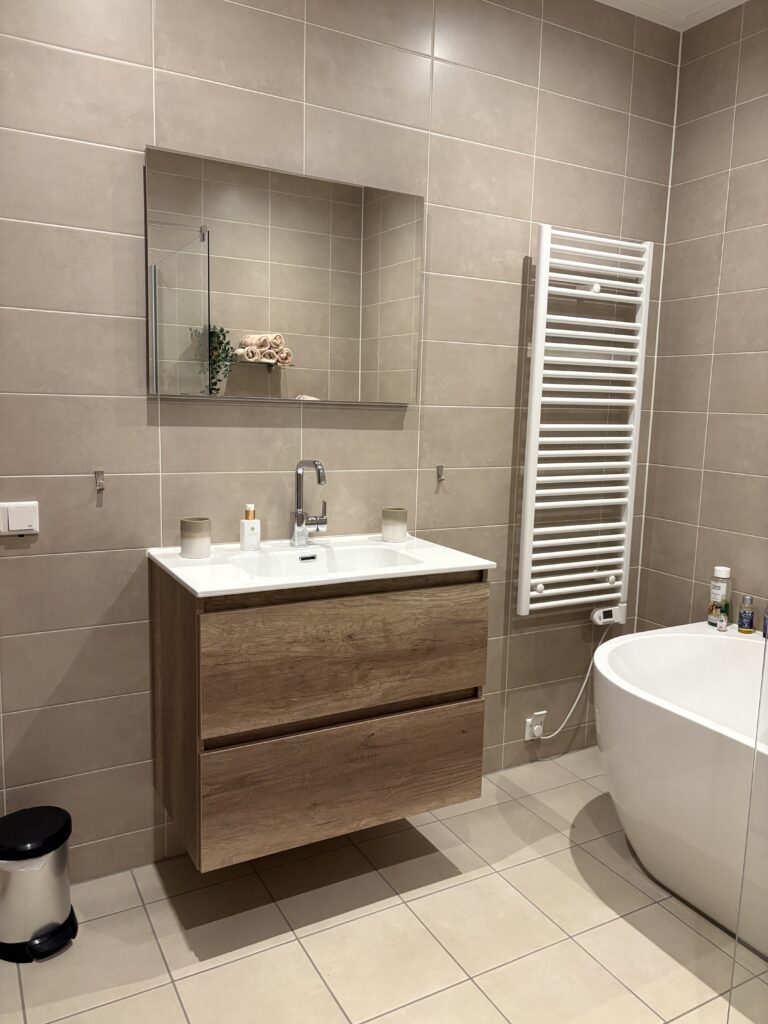 - Een luxe badkamer met bad, regendouche en apart toilet